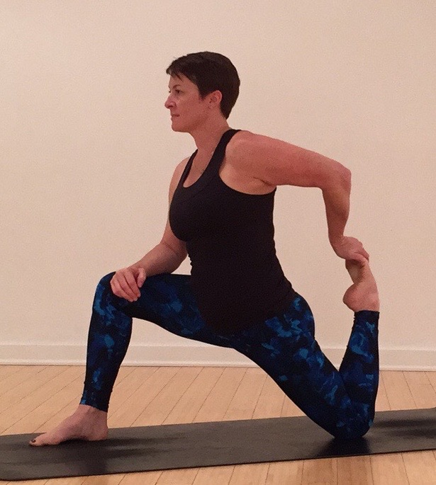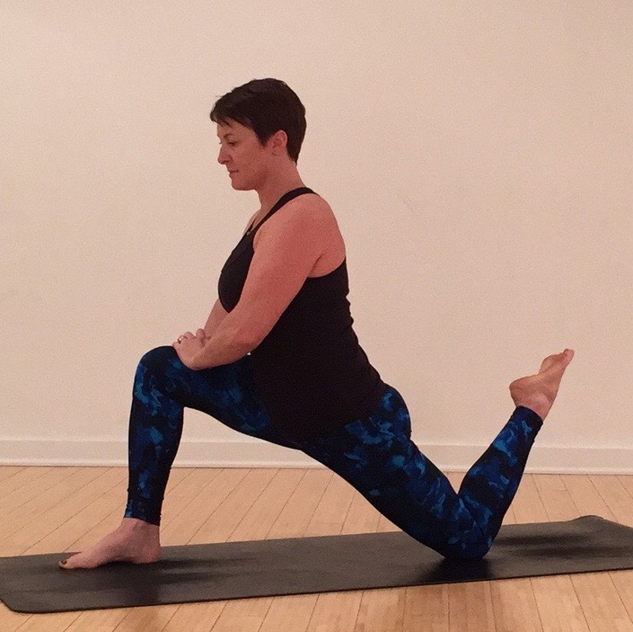 The pose dedicated to Aṅjanā cultivates open hip flexors, hamstrings, quads, and balance. In this assymetrical pose, it’s the drawing back towards center or being rooted at home that provides the stability to experiment with variations. As you progress through the variations of Aṅjaneyāsana stay grounded with a gentle hug of the inner thighs and a lifting through the pelvic floor. (Isn’t that just perfect for a pose dedicated to a mother?)